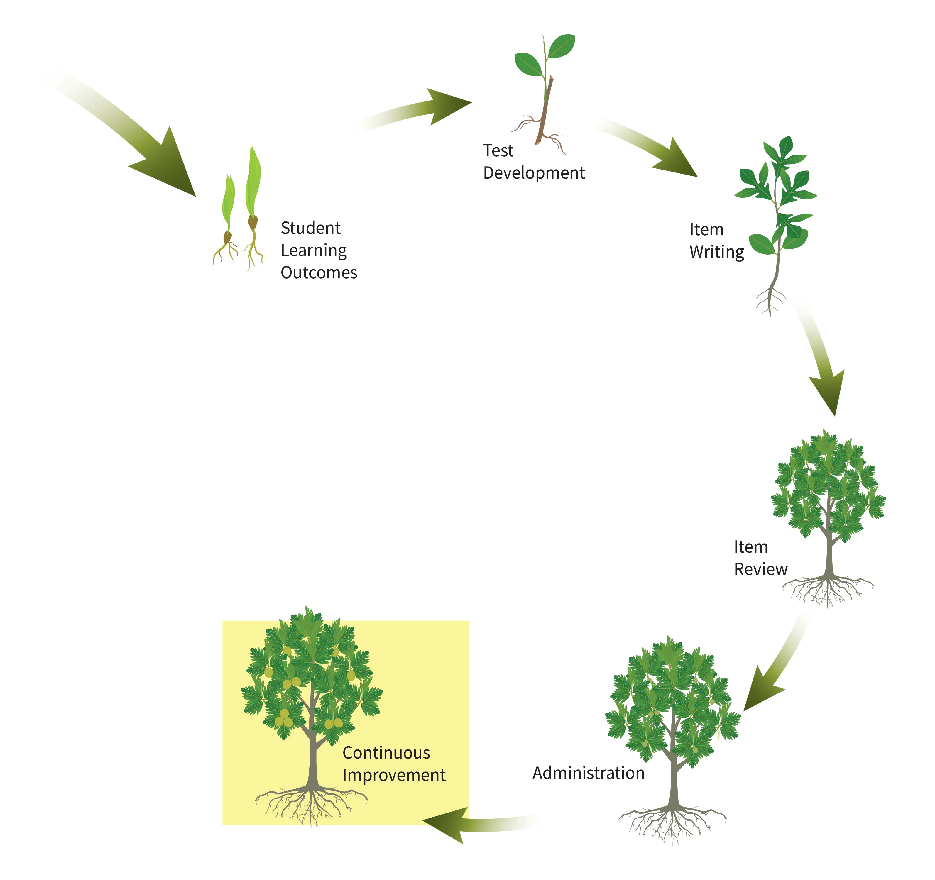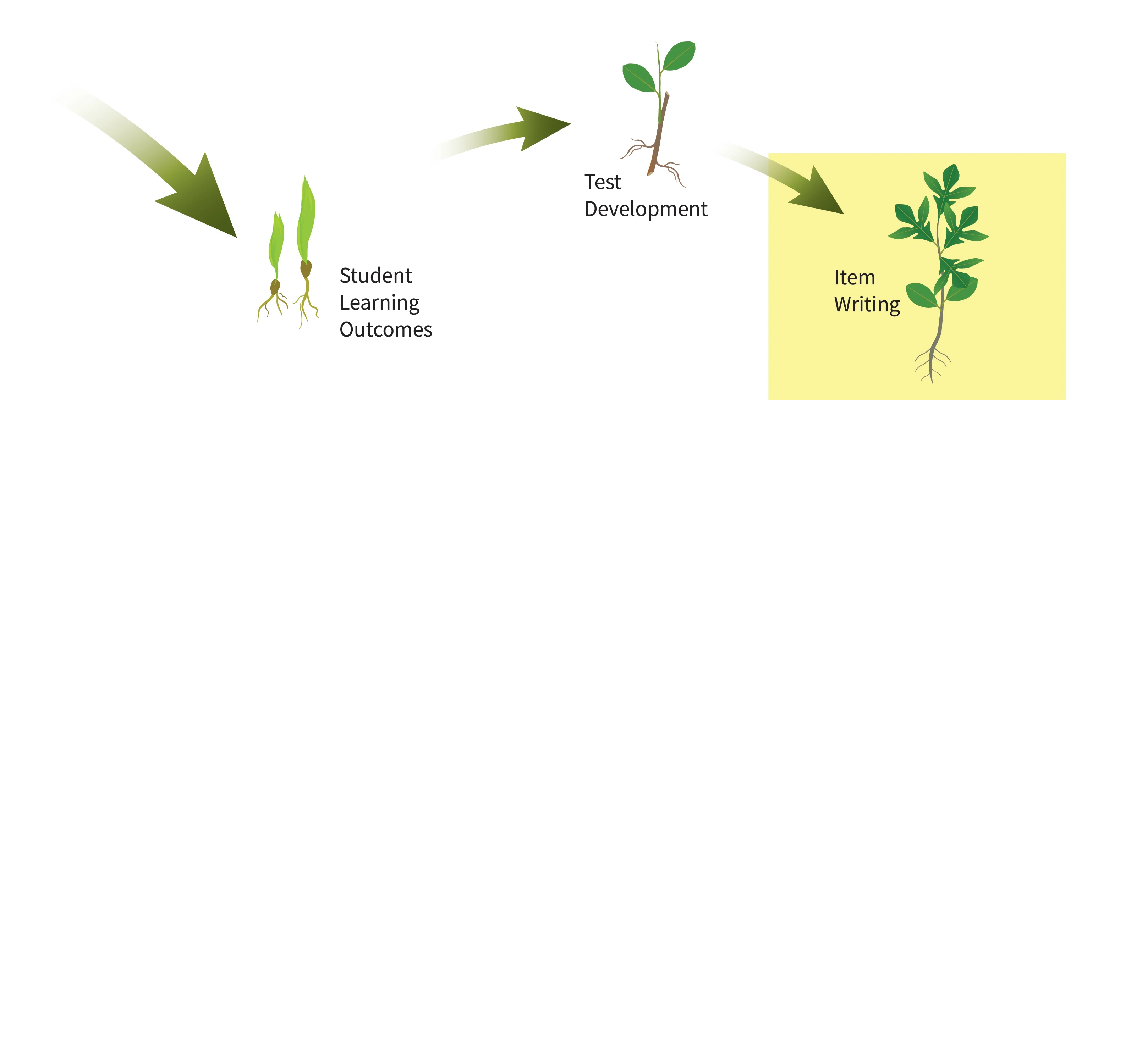 Educators and Hawaiian Language experts form the KĀʻEO core item writing teams. Teachers, language experts, and University staff work to develop items and passages written in the Hawaiian context. The result is the ongoing construction of items that measure KĀʻEO SLOs and reflect Hawaiian priorities and worldviews. The items were developed by working with Kaiapuni teachers using a rigorous process.