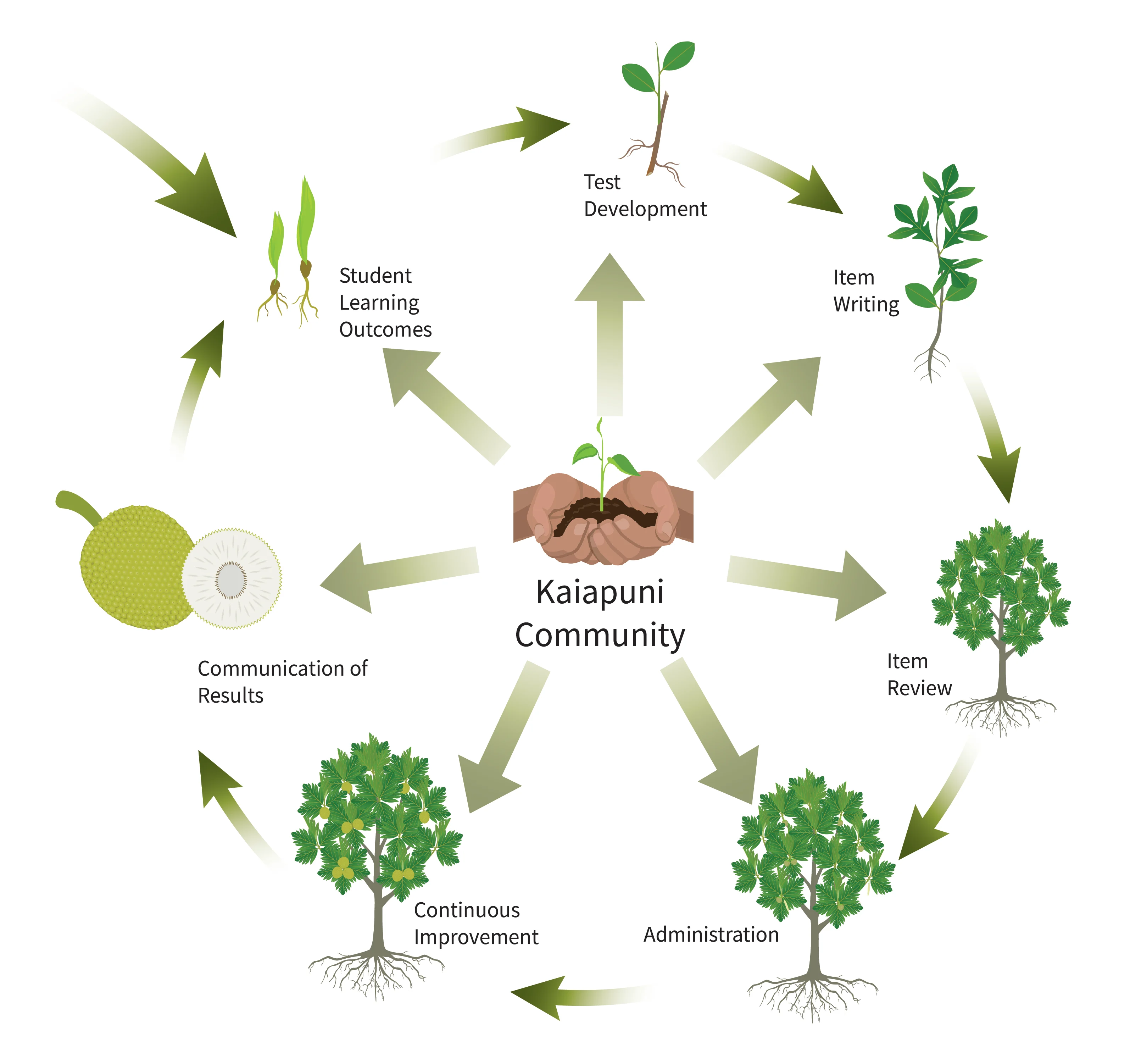 KĀʻEO would not be possible without the collaboration and support from the Hawaiian Language Immersion community. The community provides the expertise essential for every step of this assessment cycle.